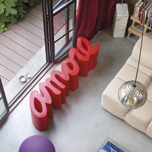 • Amore bench, Panchina Amore, ispirata all’arte del lettering; design Giò Colonna Romano per Slide in vendita da Urban Area Udine