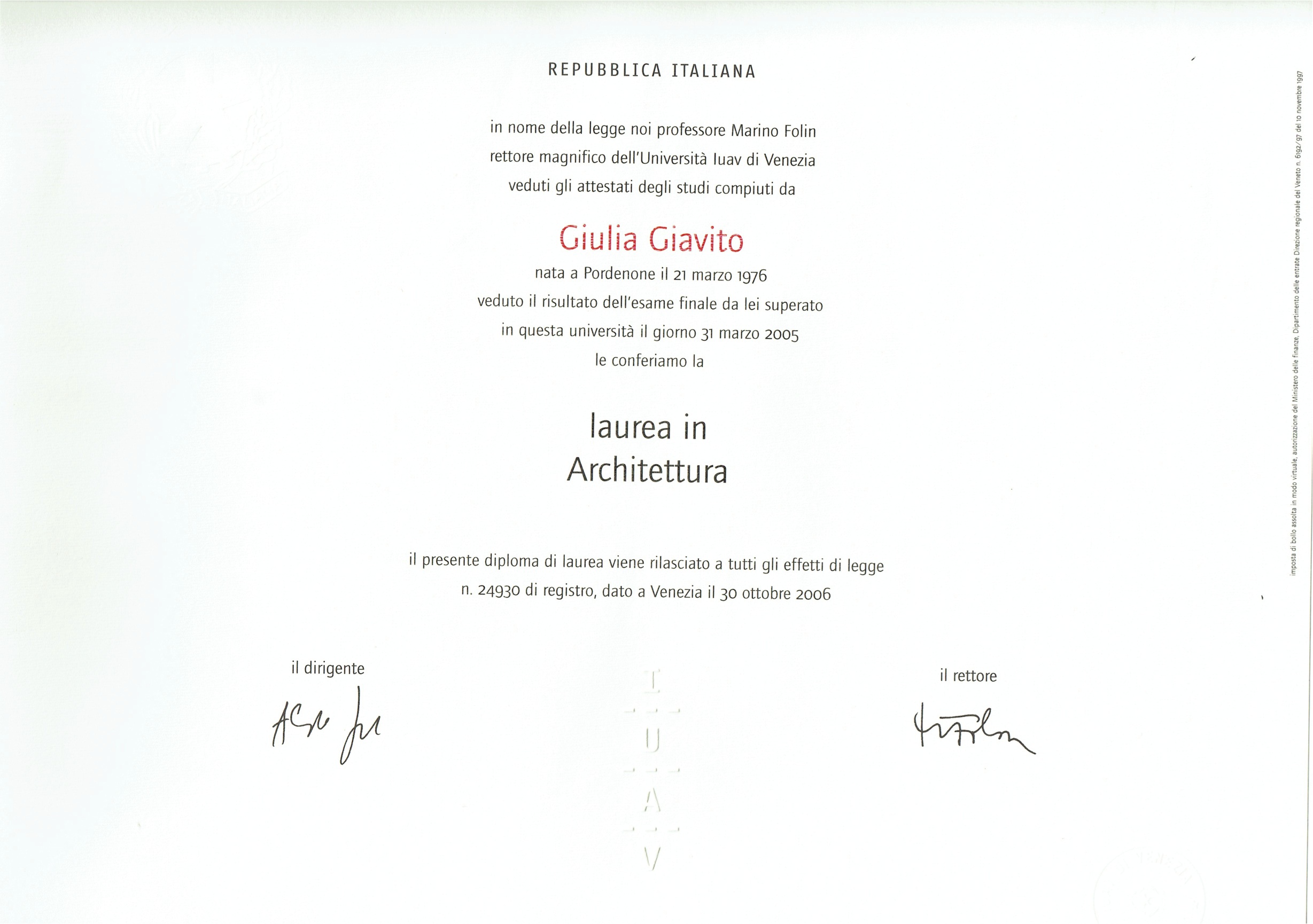 DIPLOMA DI LAUREA 30 MARZO 2005 Condividi: Condividi su X (Si apre in una nuova finestra) X Condividi su Facebook (Si apre in una nuova finestra) Facebook Mi piace Caricamento...