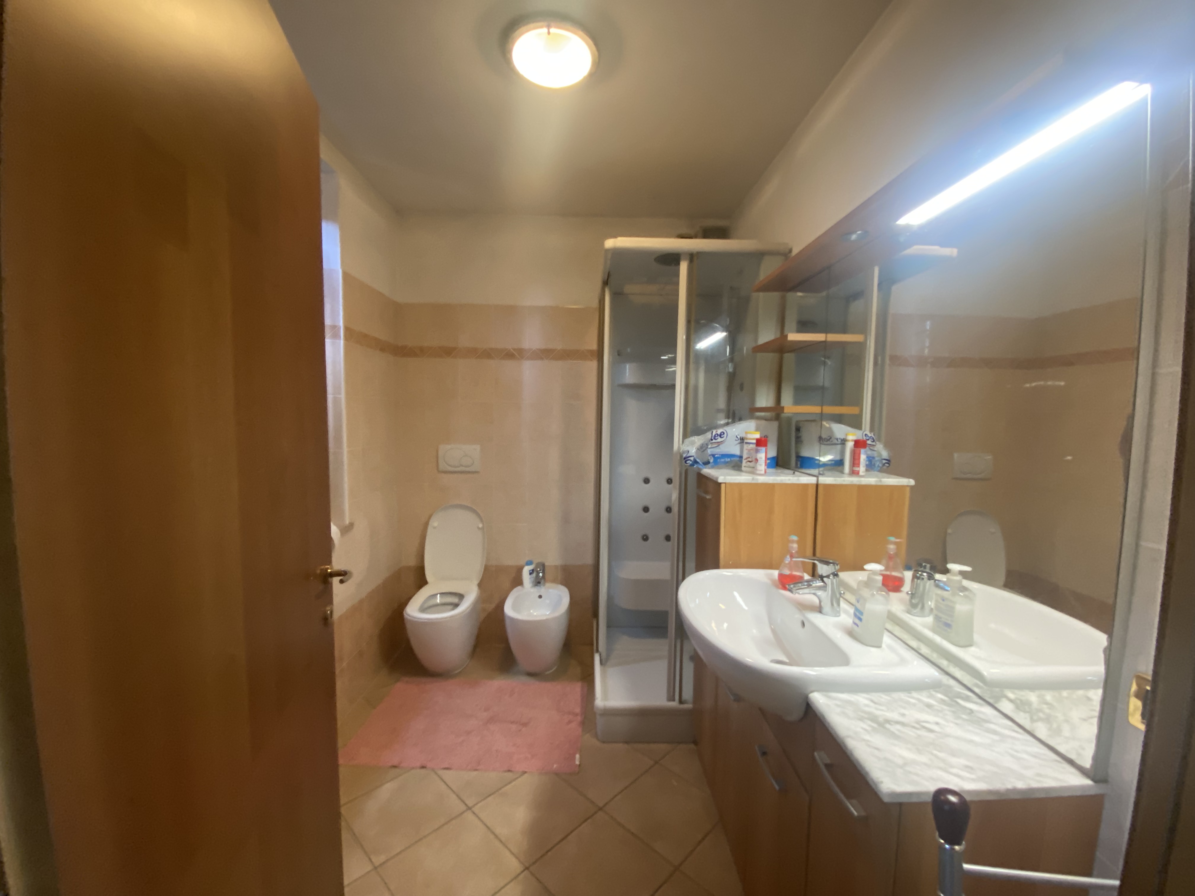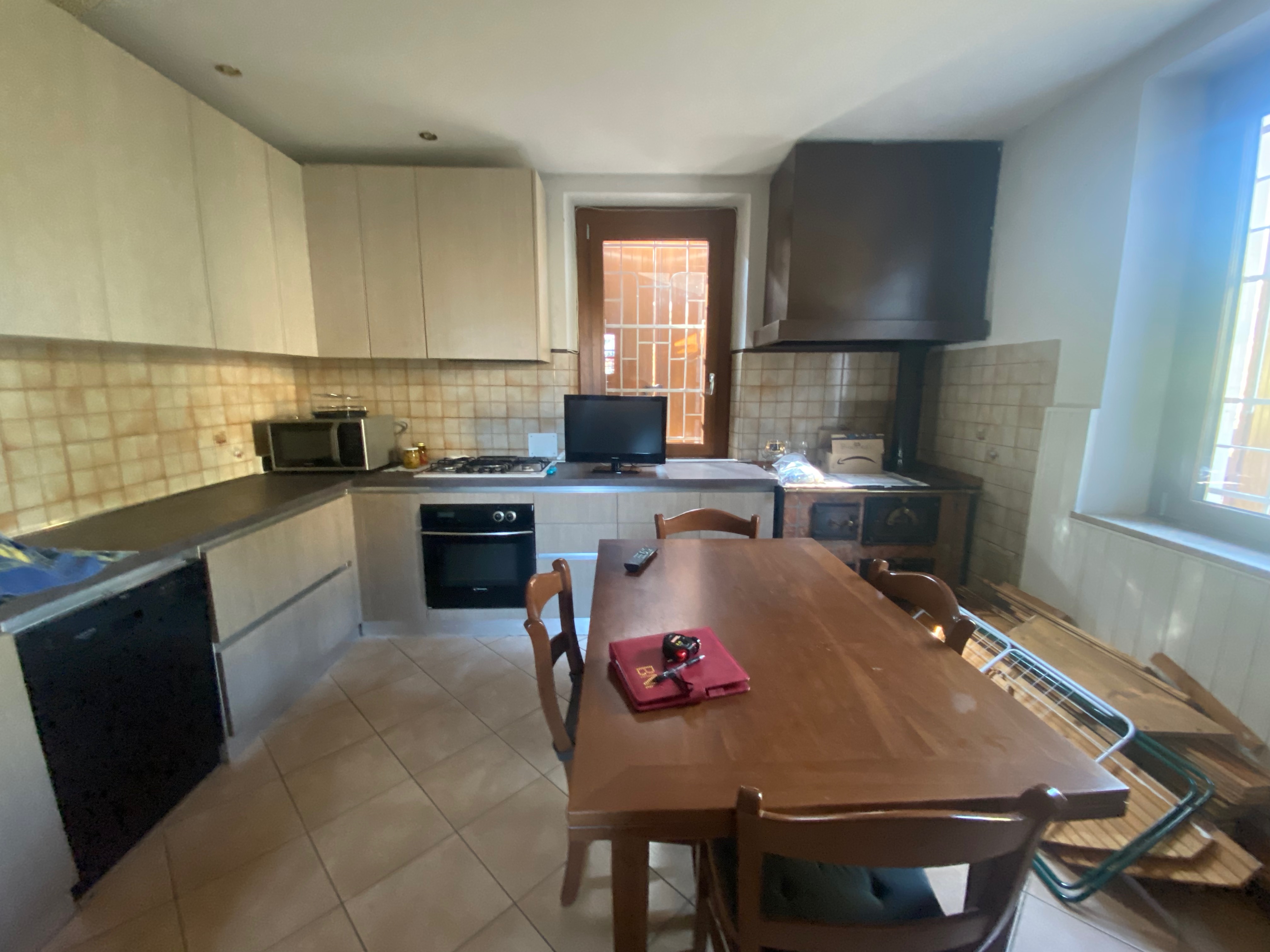Senza contare lo spazio meraviglioso del sottotetto, oltre che alle tre camere spaziose con doppia finestra, due bagni con vasca e con doccia, una cucina vera, grande, d’altri tempi, ha infatti anche lo spolert, una sala con il soffitto con travi a vista e il muro di sassi.